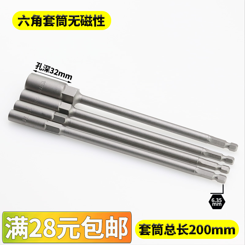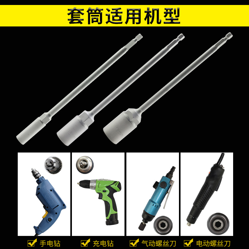 Electric drill pneumatic pneumatic screwdriver electric screwdriver lengthened hexagonal sleeve batch head 6 3 deepened nut wrench 200mm