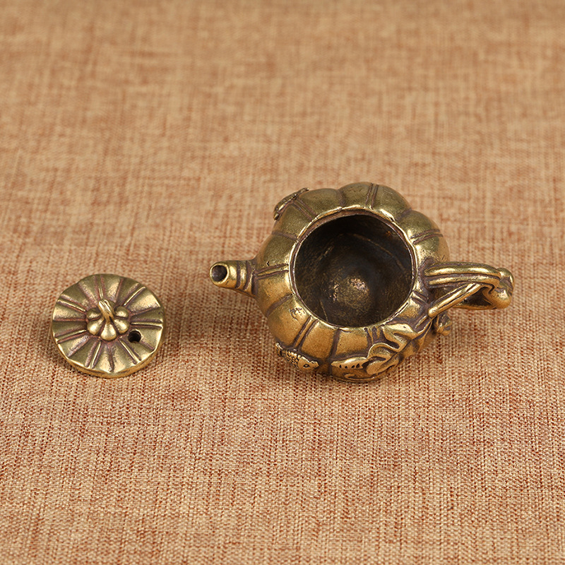 Brass Pumpkin Pot small teapot swing piece Mini small copper pot cute little pot handlebar copper small pot tea track Lingang pot-Taobao