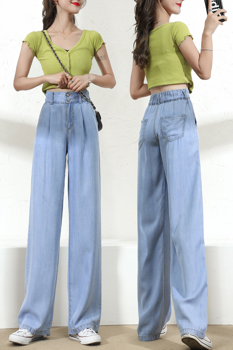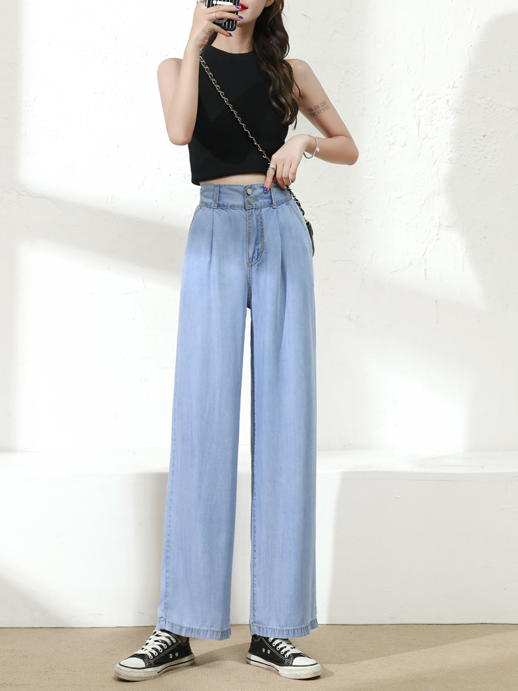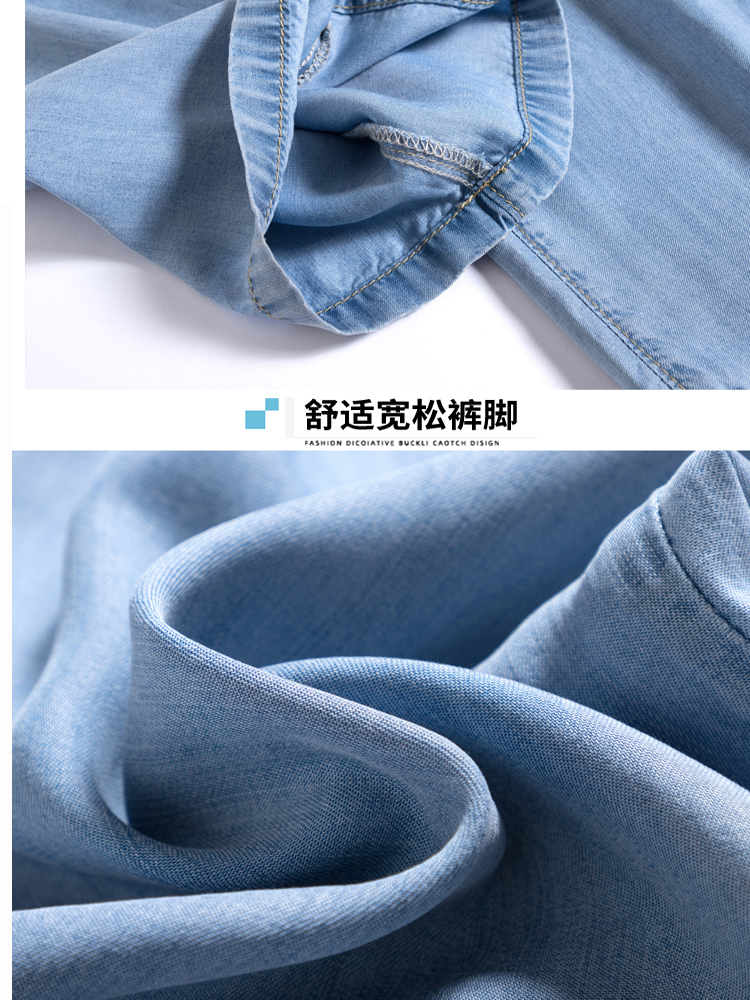 Tencel denim wide pants women's nine-point thin section summer high waist loose casual drape straight tube ice silk mopping pants long