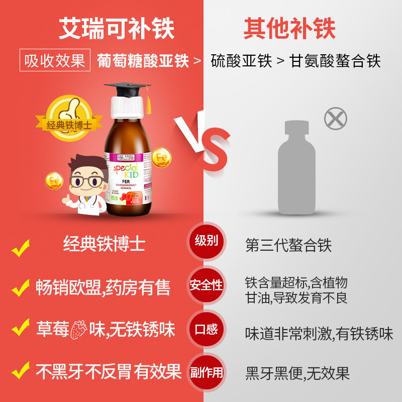 Aery refillable iron liquid 3 bottled glycine Sequestration Iron baby Iron Supplement Iron Oral Fluid Child Iron