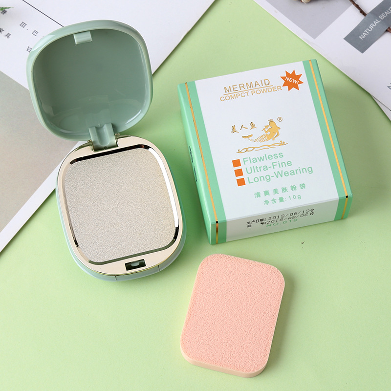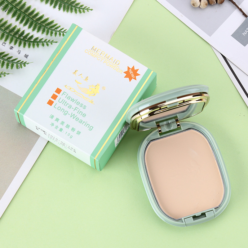 Mermaid refreshing skin powder Oil control Natural concealer powder Makeup setting Wet and dry foundation Domestic cosmetics