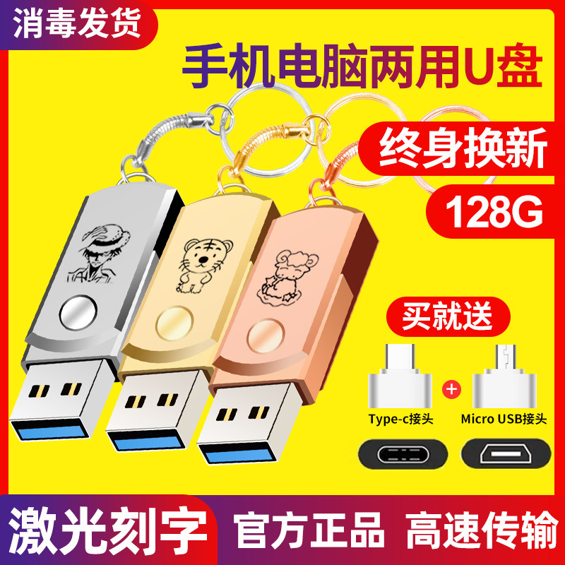 (Official Genuine) High Speed U Disk 128G Super Large Capacity Metal Flash Drive 256G Mobile Computer Dual-use 512GUSB Flash Drive Lettering Custom Creative Car 64G 32G 1