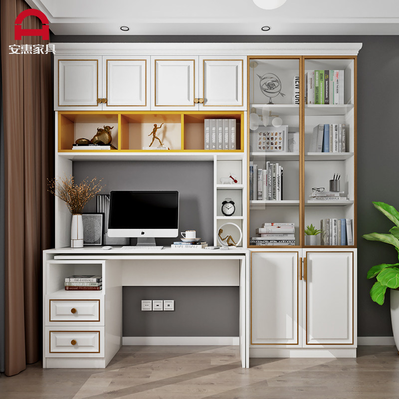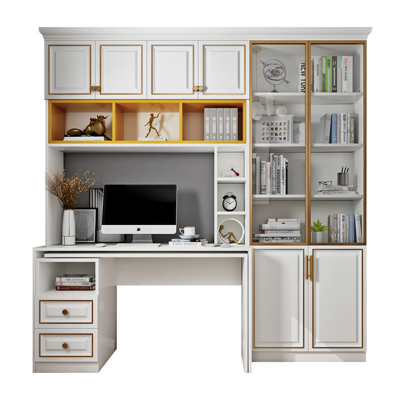 Light luxury bookcase with desk bookshelf Wardrobe One-piece custom computer desk Corner plus combination cabinet Study table
