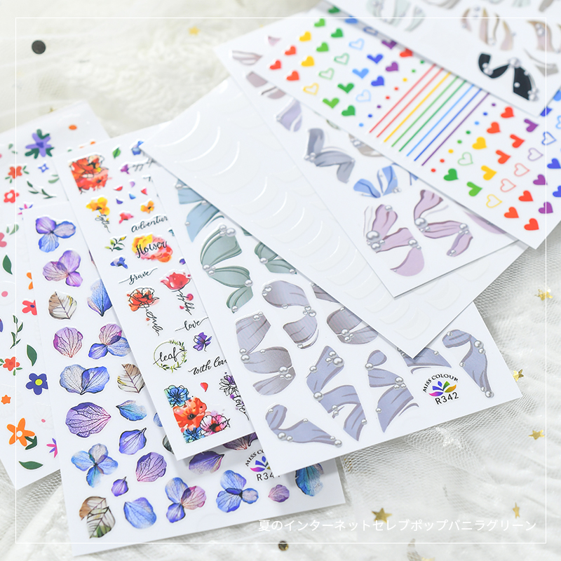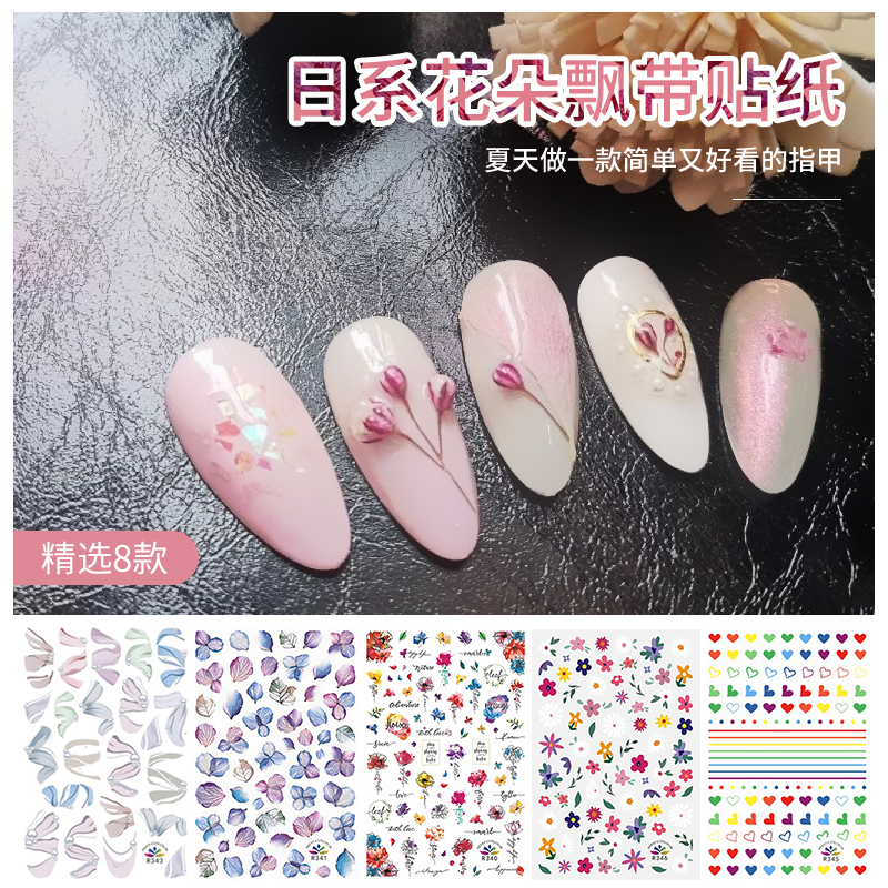 Net red streamer manicure stickers Japanese small flower ballet shoes ribbon small flower girl heart French nail decal