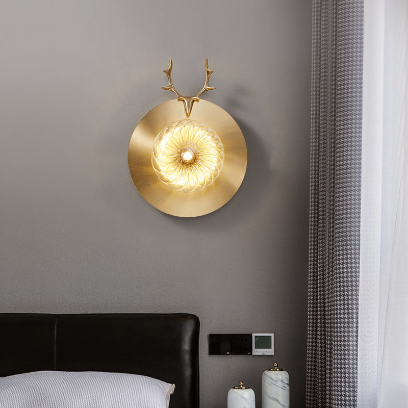 New all-copper light luxury crystal wall lamp living room background wall simple Nordic style bedroom bedside staircase aisle lamp