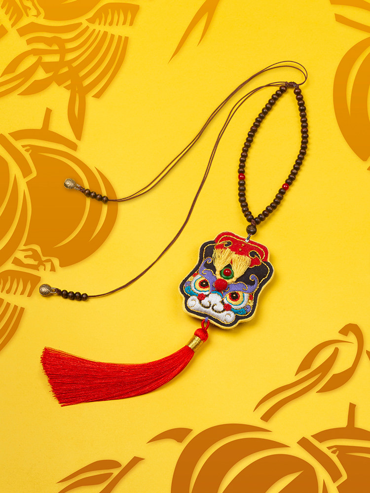 Wang's hand created auspicious lion awakening lion handmade finished product diy embroidery Ping An Fufu car pendant purse for boyfriend gift