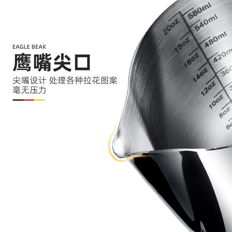German Sharp Mouth Coffee Lakflower Cups Stainless Steel 304 embossing with scale cups Specialty pull-flower cylinders Milk Foam Appliance