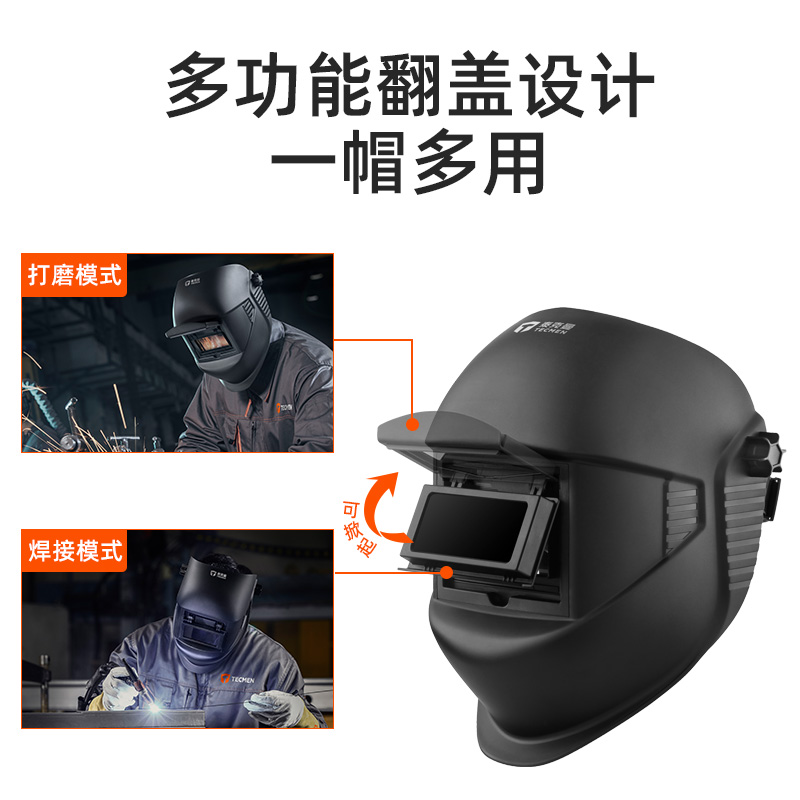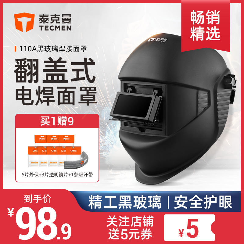 Tekman 110A Argon arc welding cap welding shield Face lightweight head-mounted clamshell black glass welding mask