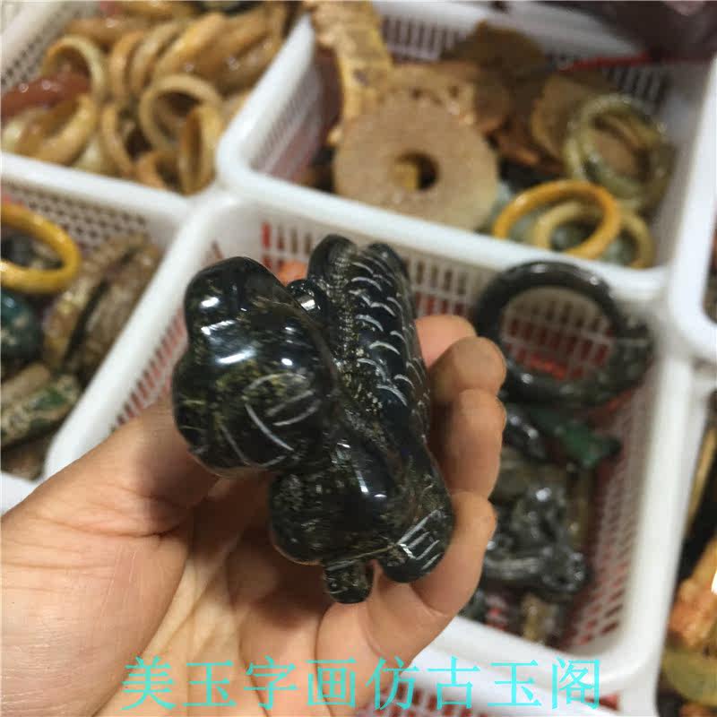 Ancient Play Antique Old Bag Berries Mermaid Jade Ruyi Swing Piece Black Old Xiu Jade Old Objects Imitation Ancient West Zhou Dynasties