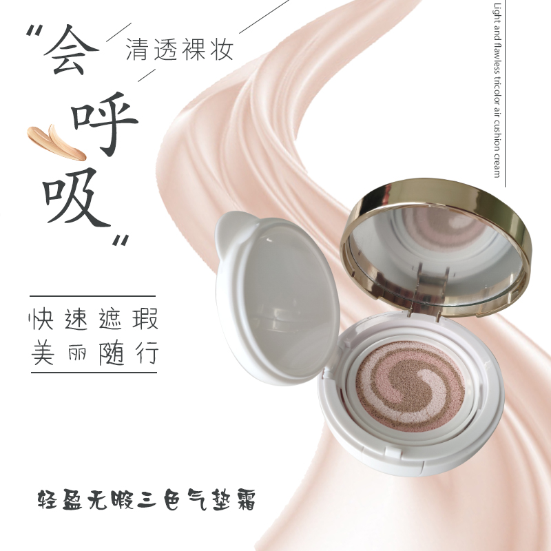 Ixe's lightweight, flawless tri-color cushion cream foundation isolates moisturizing brightening concealer without taking off makeup for long-lasting
