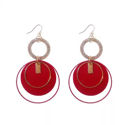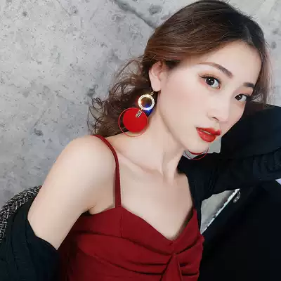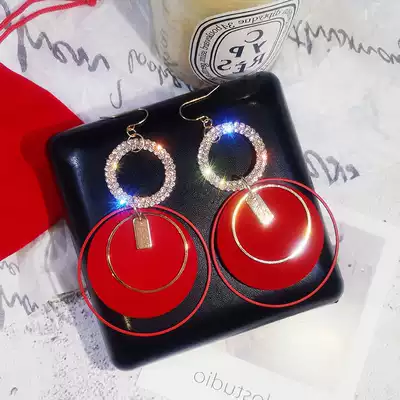 Big circle exaggerated earrings female 2021 New temperament long version red ear needle Korean tassel sterling silver earring tide