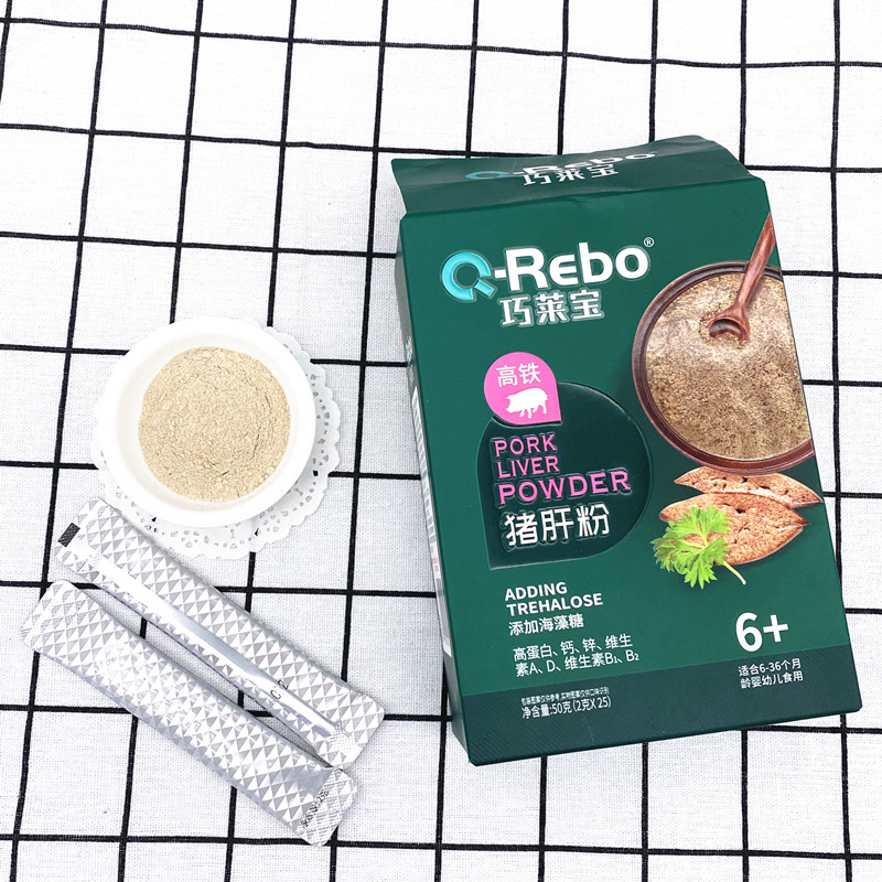 Qiaolaibao baby pig liver powder 50g boxed small bag mixed liver powder 2gX25 bags