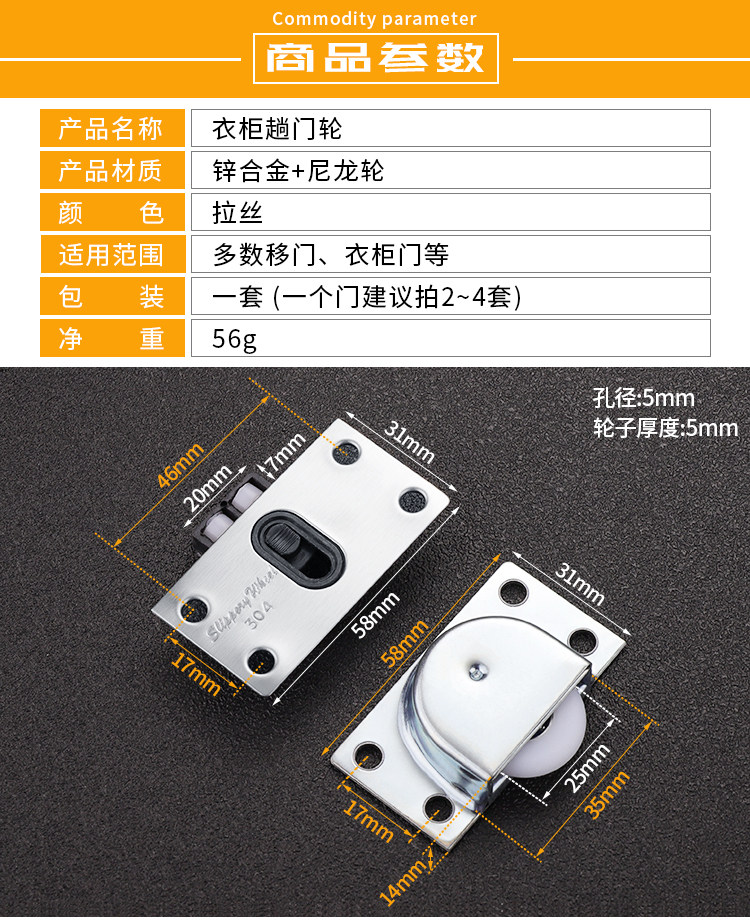 Wardrobe Ramen pulley moving door accessories upper wheels Lower track rollers old Ramen wheel cam cabinet doors
