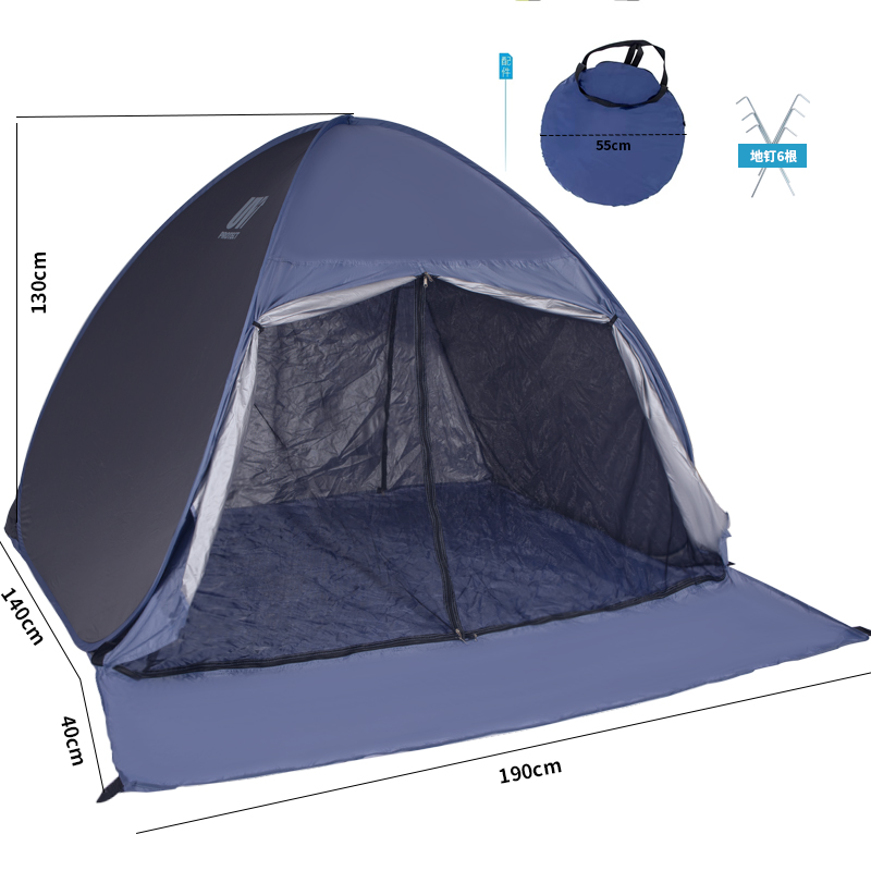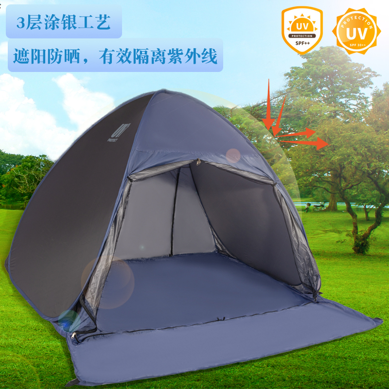 Tent outdoor 3-4 people picnic park Beach tent coated with silver sun protection UV quick-open free construction shed