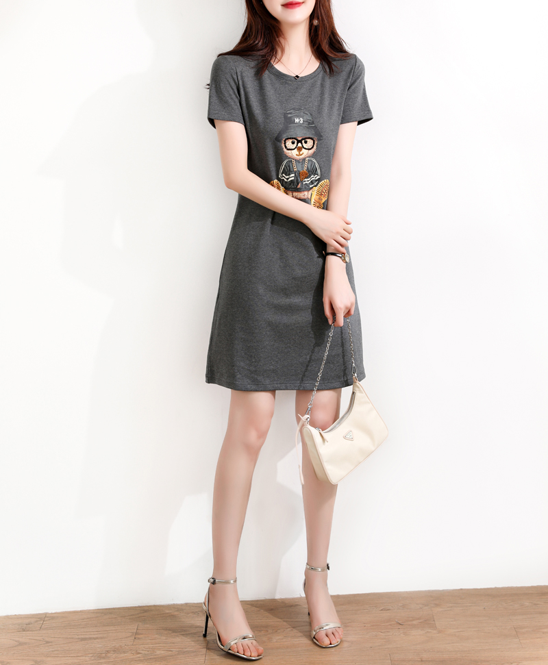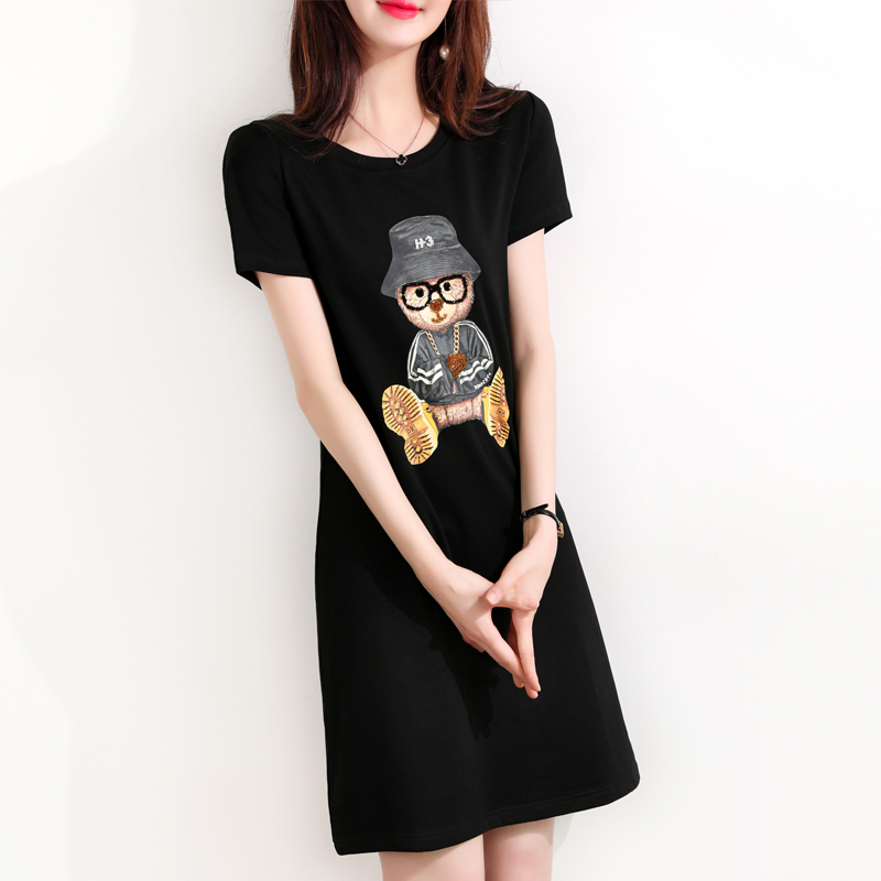 Malcenl klon2020 new bear cartoon knitted skirt Korean version loose all-match retro Hong Kong style dress