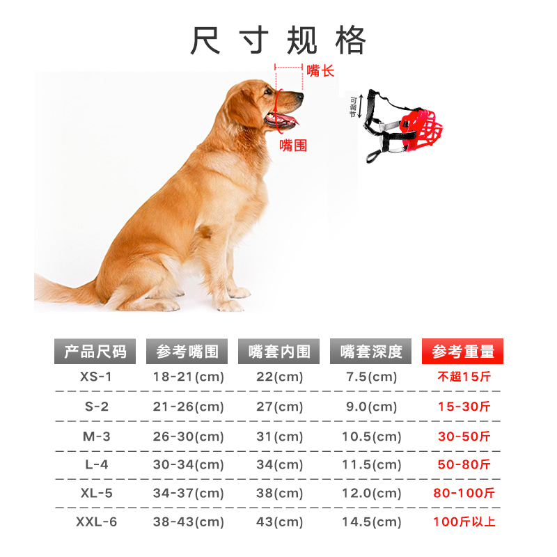 1#嘴围18-21cm recommended for weight 5-8KG2#嘴围21-26cm recommended for weight 8-15KG3#嘴围26-30cm recommended weight 1