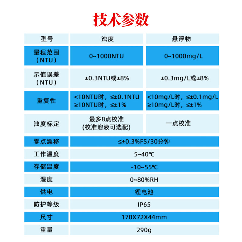 Portable turbidity detector 0-20NTU portable turbidity detector 0-1000NTU portable turbidity suspended material two-in-one detector (turbidity standard liquid) 0 1 2 10