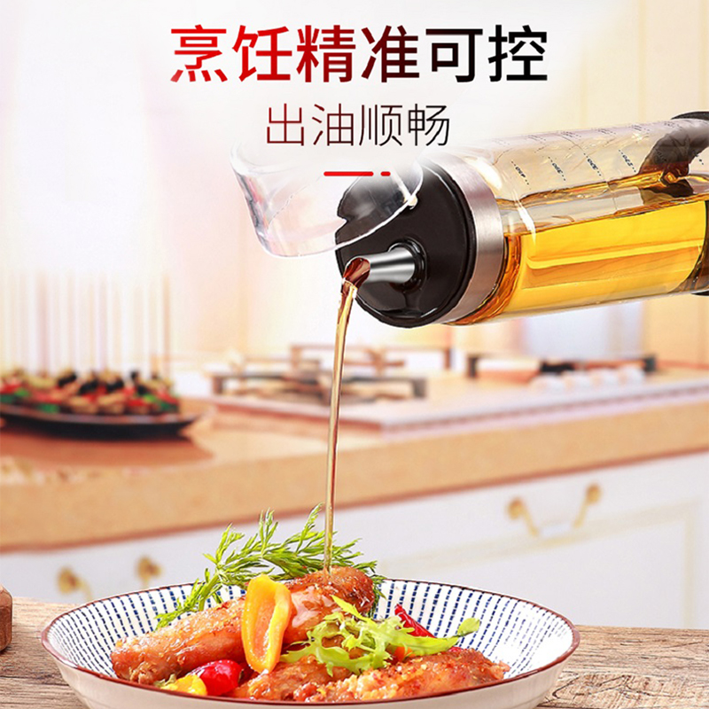 Soy sauce vinegar edible oil tank household with lid scale household glass oil pot not hanging oil leak-proof oil bottle resistant to high temperature