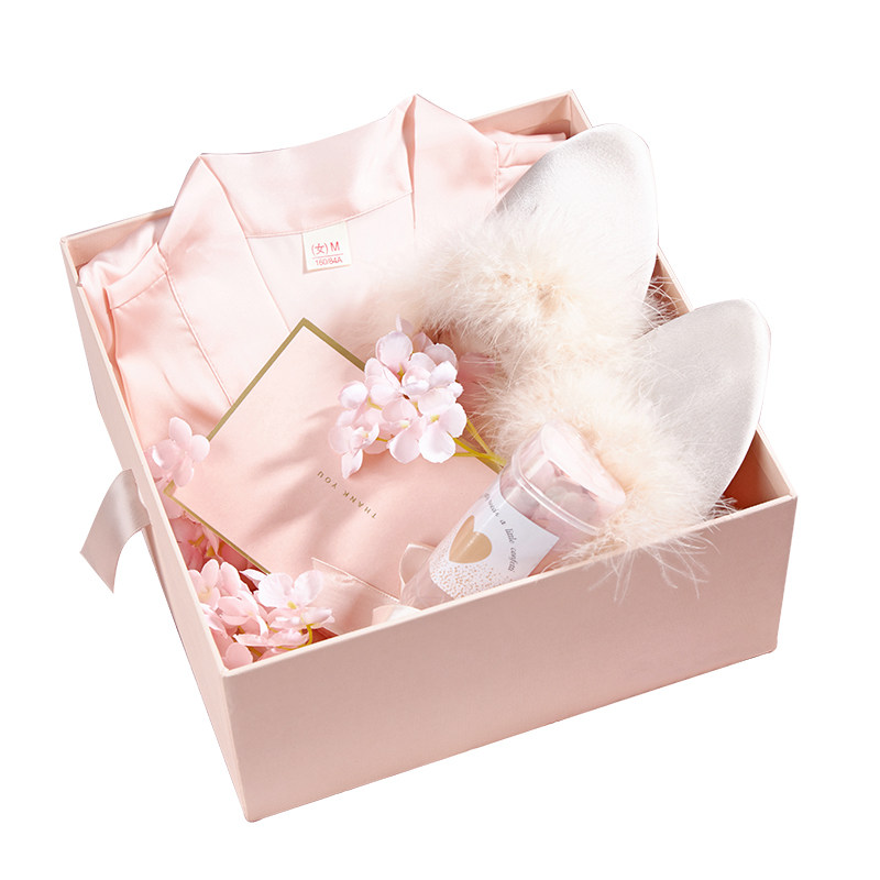 ins wind box hand gift Female companion heart gift box Sister group morning robe Ice silk nightgown set Model gift