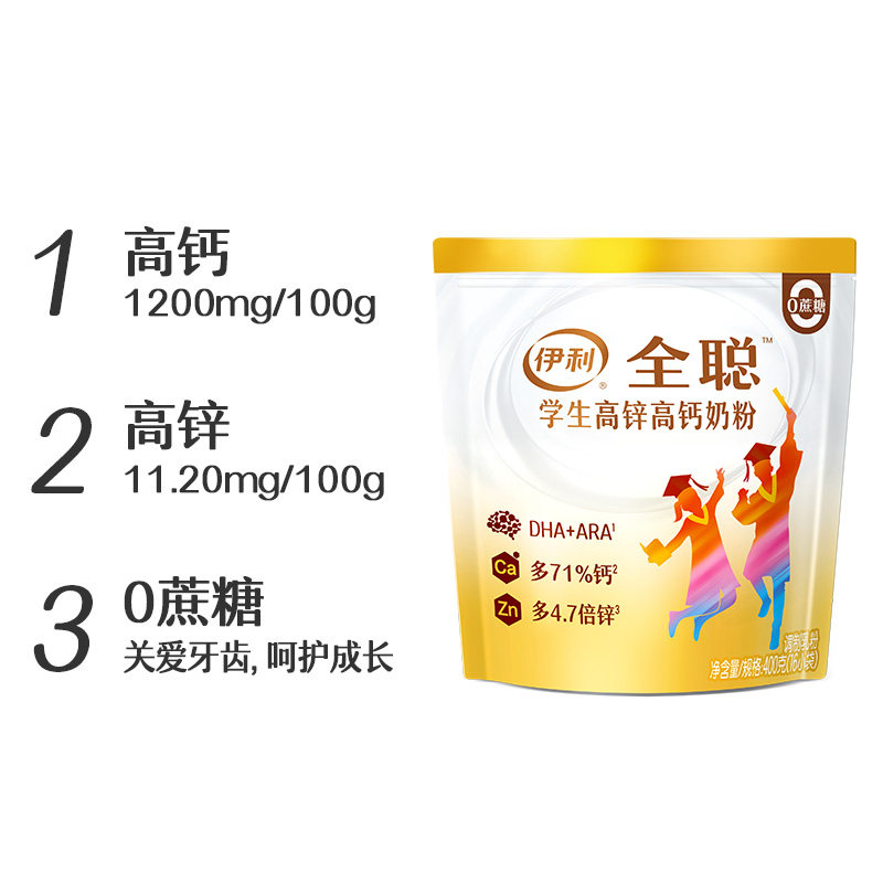 Yili student milk powder 400g * 2 bags high zinc high calcium children teenagers high school college students male and female nutrition growth