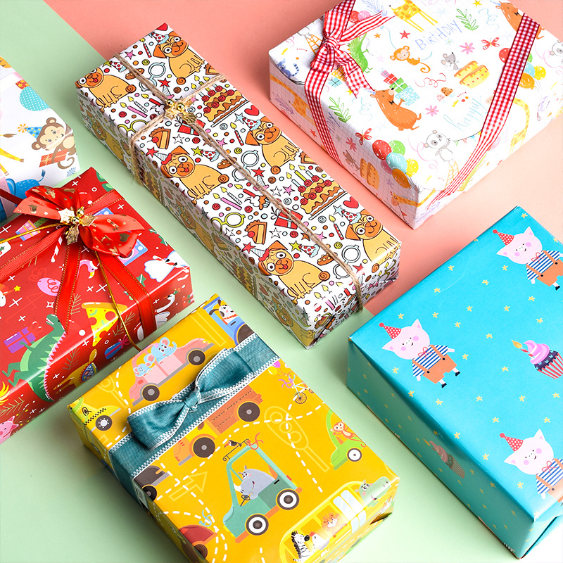 Birthday gift wrapping paper Bouquet snack bag gift box of paper large size oversized parents and children Christmas Day gift paper small fresh cartoon cute handmade book leather bag book paper ins wind