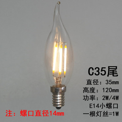 Edison Retro LED Light Bulb E14 Small Spirile Tip Bubble Pull Tail Crystal Pendant Lamp Tungsten Filament Matching Light Source Ball Bubble
