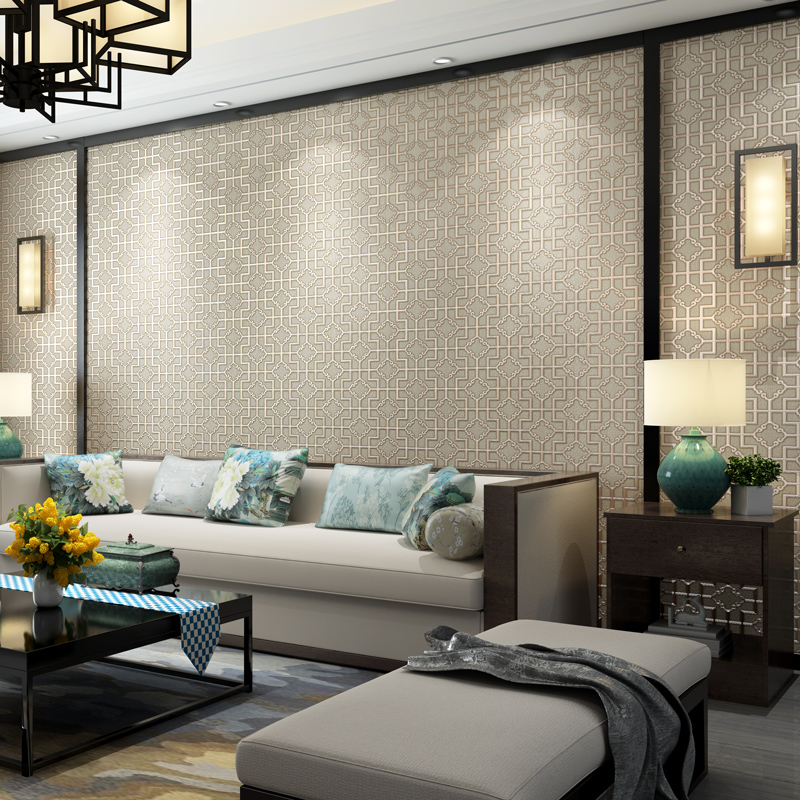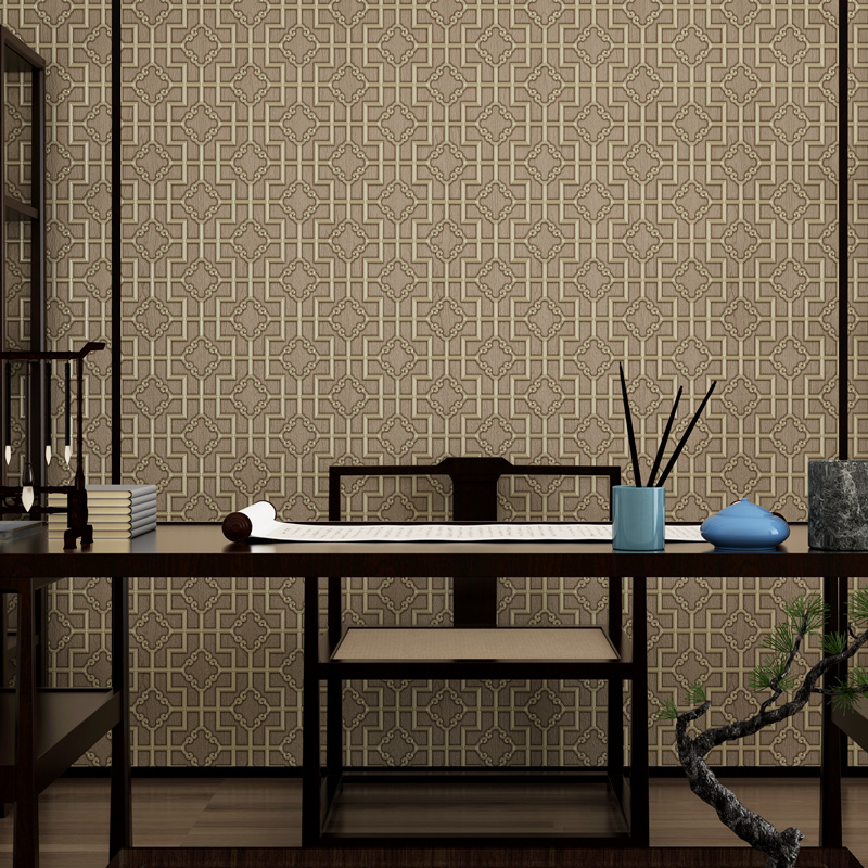 Modern simple Chinese classical three-dimensional wallpaper bedroom living room TV background wall paper 3D lattice teahouse decoration