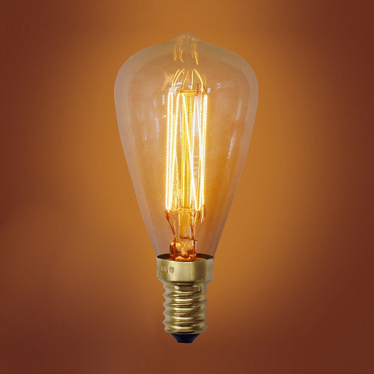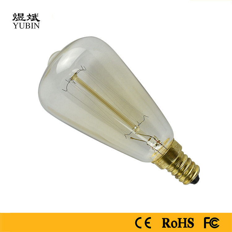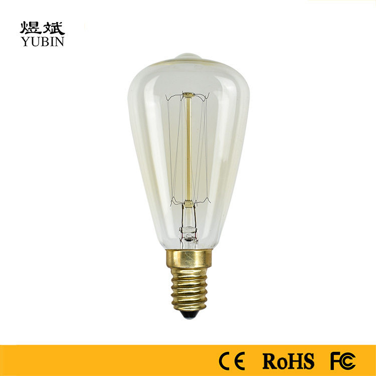 ST48 straight wire 40W Edison retro small tungsten filament hanging bell bubble vertical wire e14 small screw mouth tea colour small pacifier bulb
