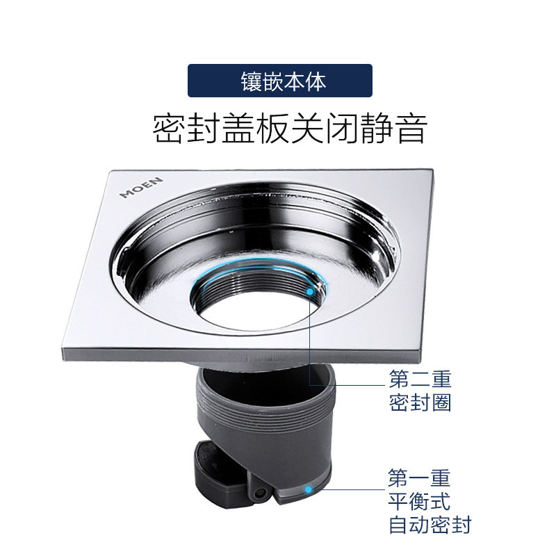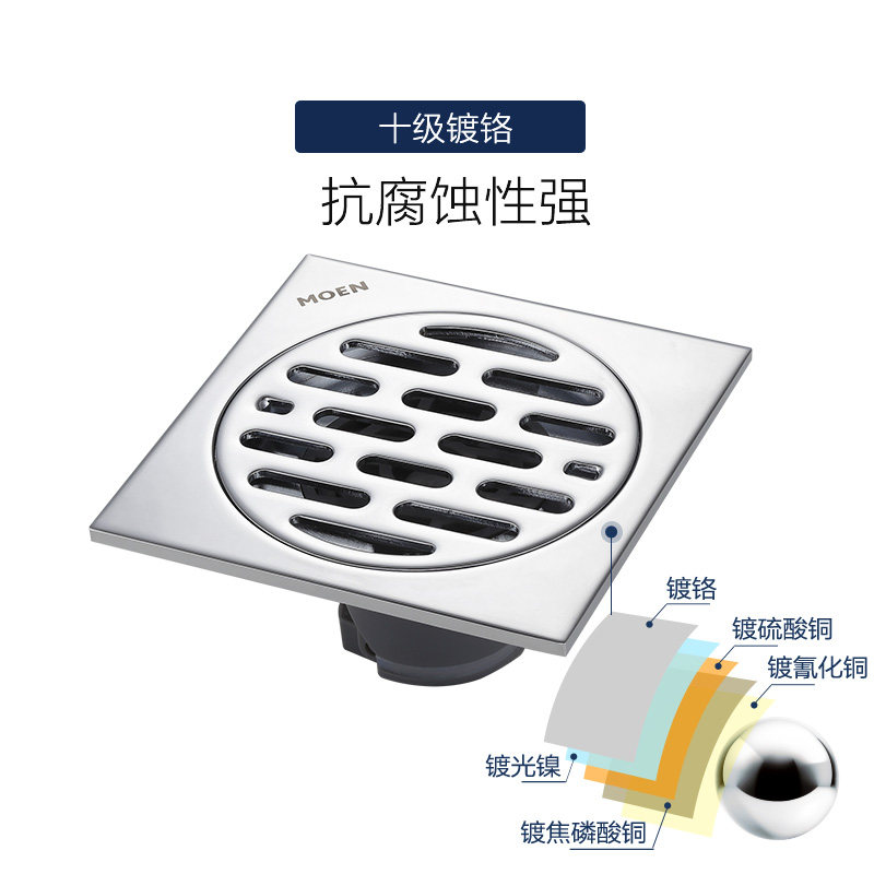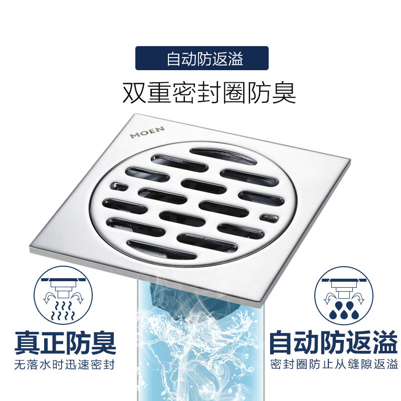 Moen square powder room kitchen bathroom anti-insect anti-return anti-odor floor drain cover sheet inner core fine copper floor drain 3955