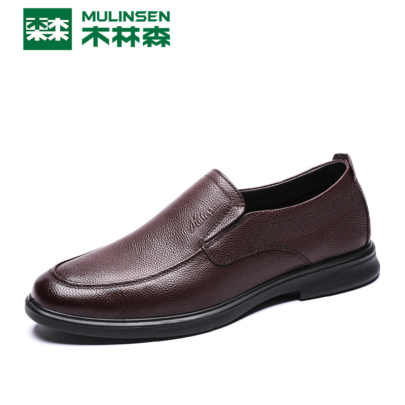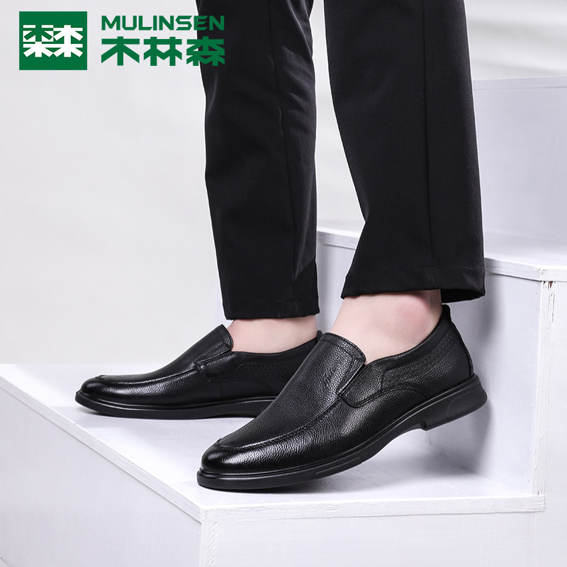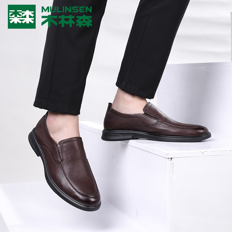 Wood Linson Men Shoes Business Casual Leather Shoes Spring Fall Men Genuine Leather Breathable a Foot Pedal Middle Aged Dad Shoes