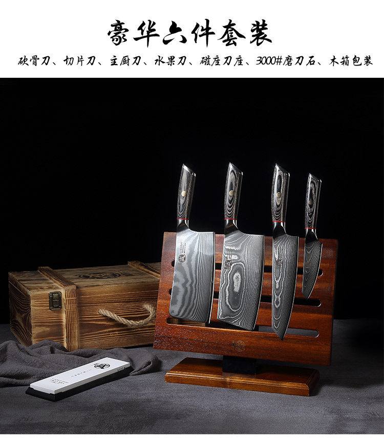 Japanese kitchen knife set Damascus steel kitchen knife household kitchen knife slicing knife Xun Sanbensheng imported advanced