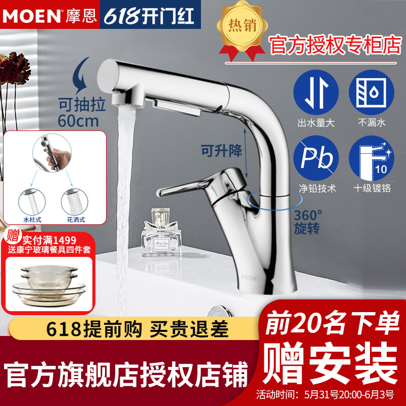 MOEN Moon Single Hole Drawing Cold and Hot Tap Drawing Room Bathroom Cabinet Black 91035