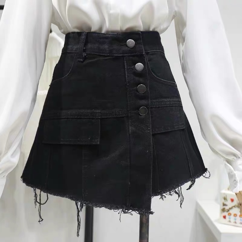 High-waisted denim skirt women's summer new anti-glare shorts skirt large size fat mm was thin bag hip a-line skirt pants
