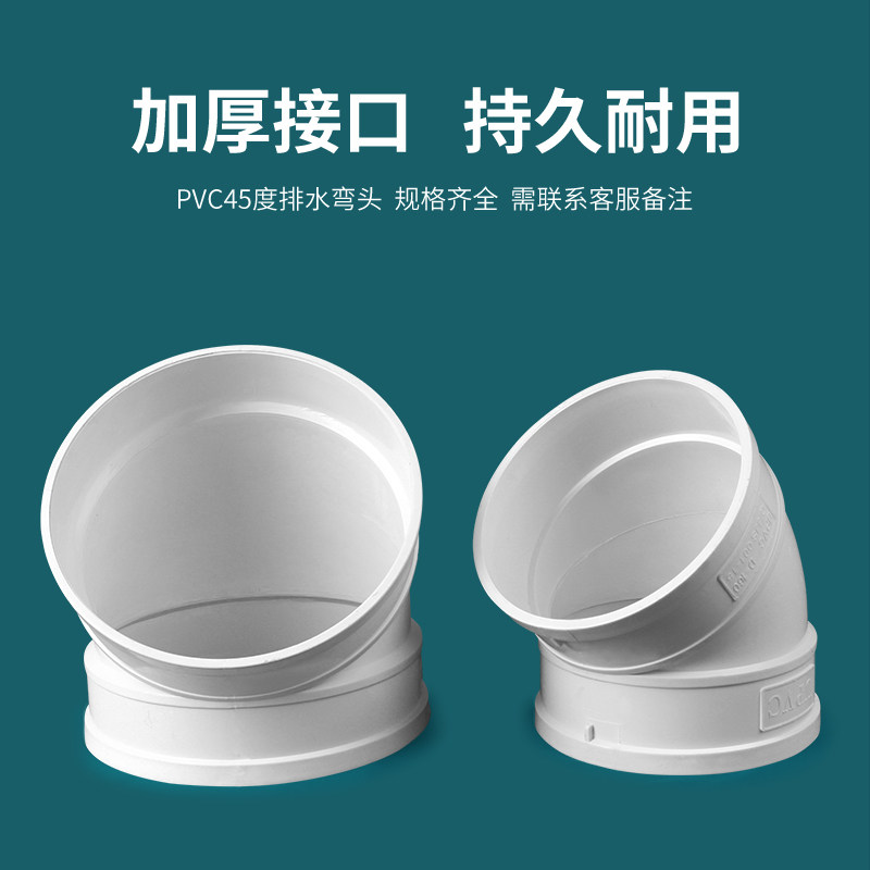 PVC45 degree elbow water pipe fitting straight bend drain pipe inspection mouth 200250315400-half bend small bend