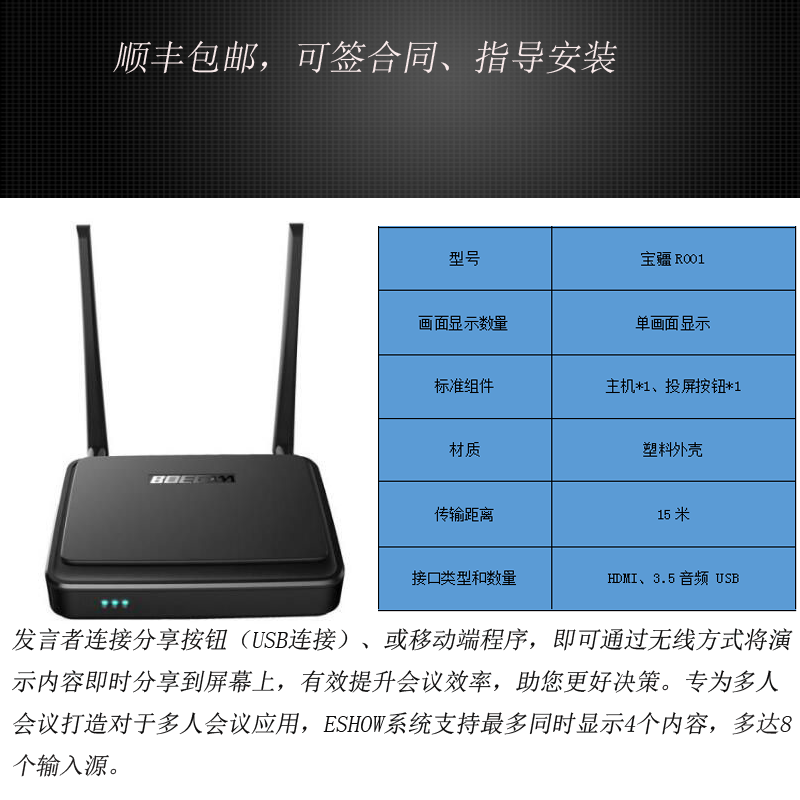 Baojiang wireless with screen projector HD audio and video one-button conference transmission ESHOW-R001 RK001 Y100