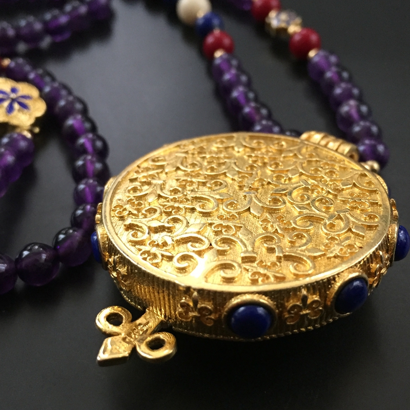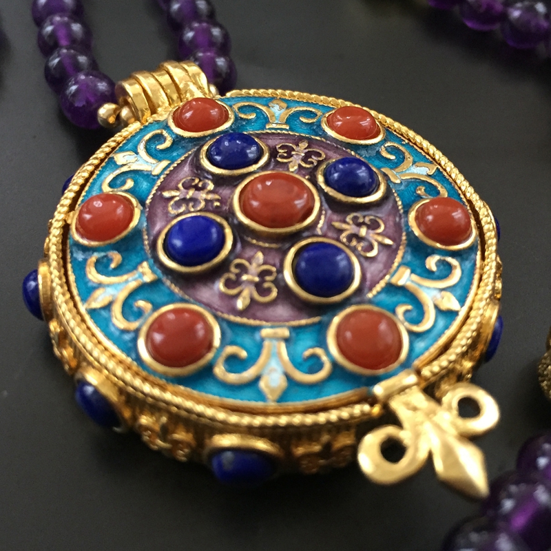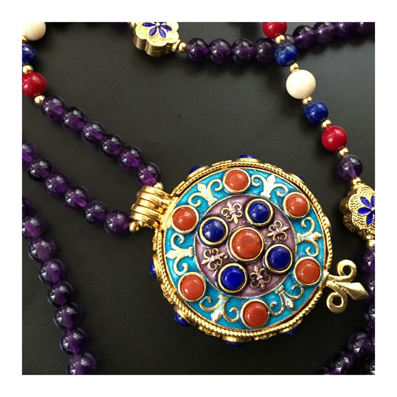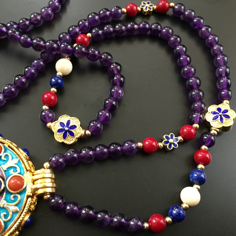 Pure silver gold-plated auspicious handmade filigree enamel inlaid bead chain Traditional intangible craft pendant DD12
