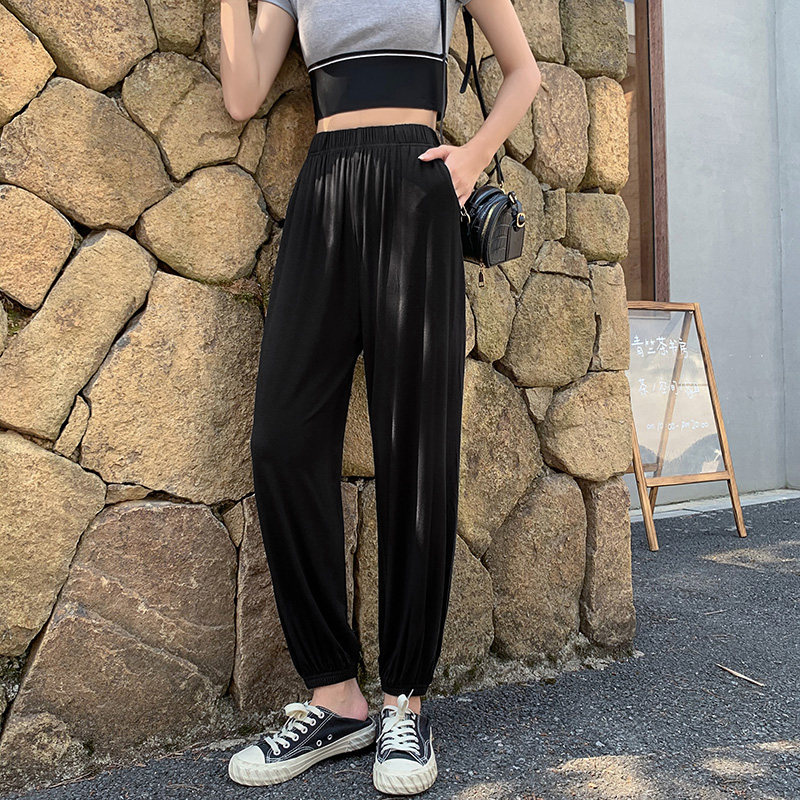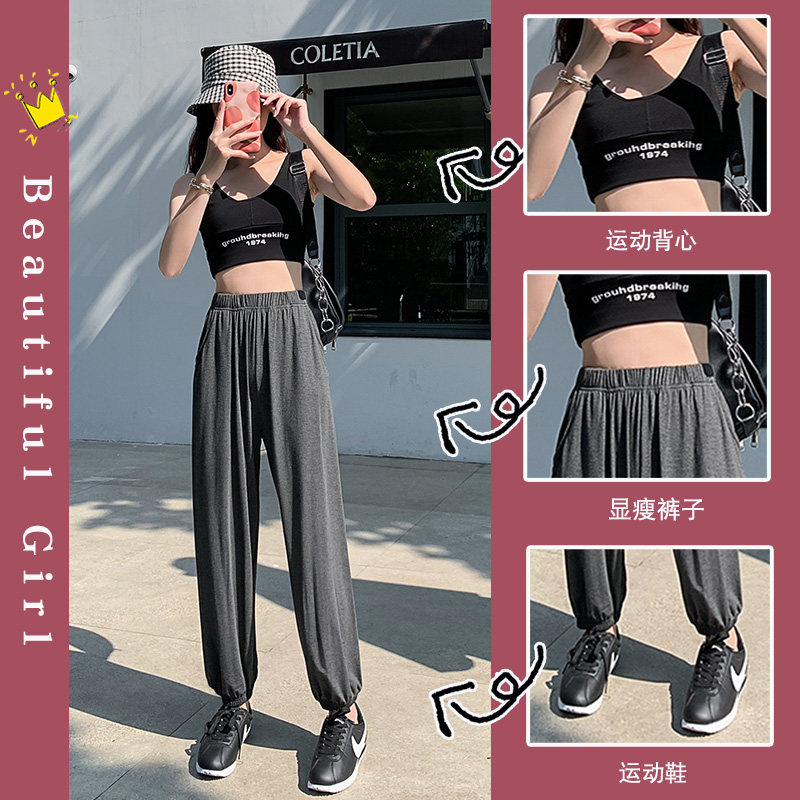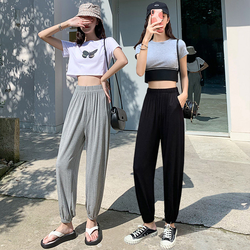 Gray sweatpants women's loose drawstring casual pants summer thin section Harlan Modal bloomers mosquito-proof adult