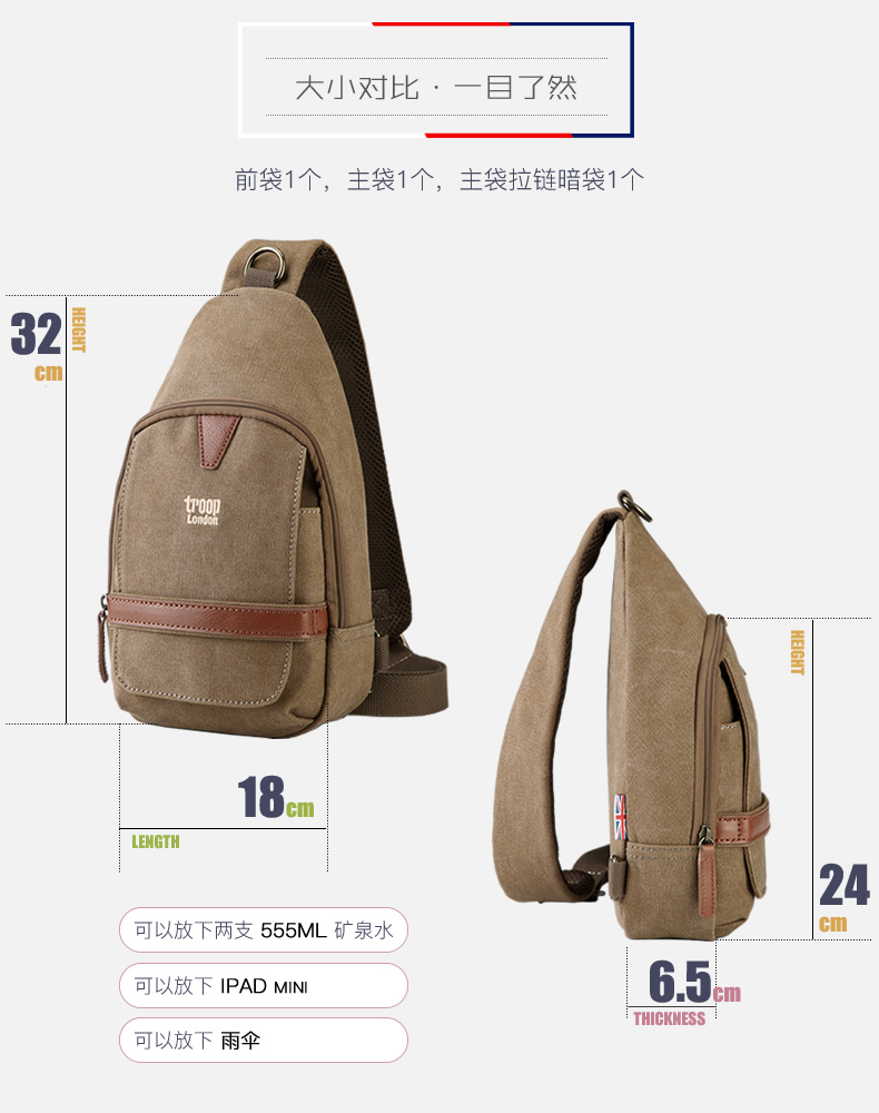Troop chest bag men's canvas messenger chest bag large-capacity fashion casual retro sports shoulder chest bag tide brand