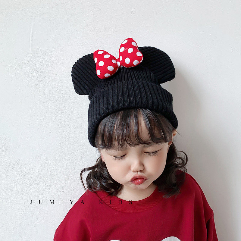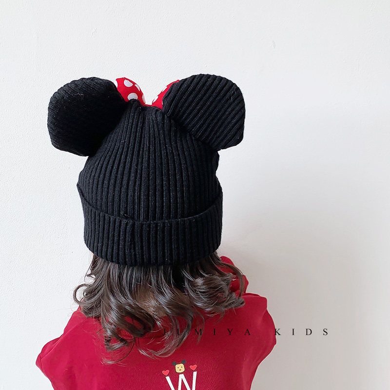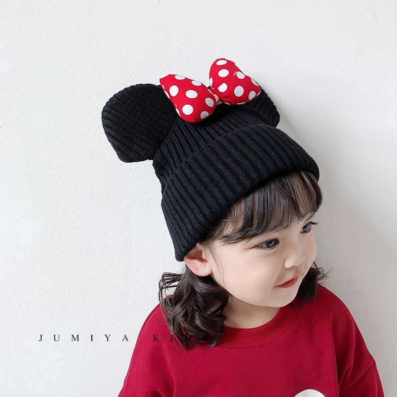 Korean children's hat autumn and winter Mickey cute female baby Western style fashion bow princess knitted wool hat trend