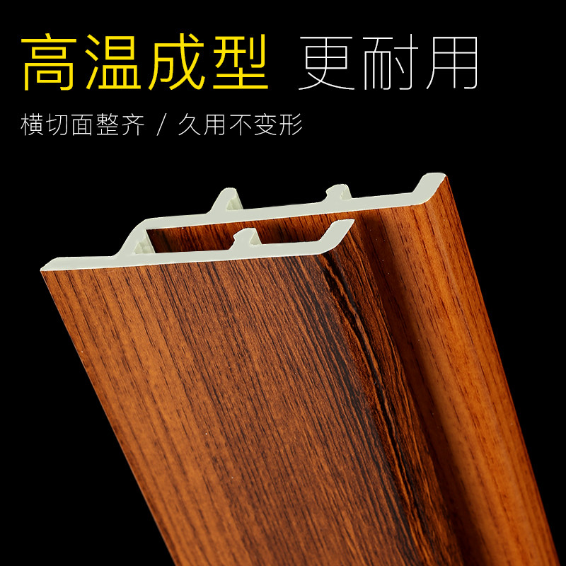 Bamboo fiber flat skirting board PVC polymer 8 5 cm wood grain wall sticker waterproof thickened skirting line black and white
