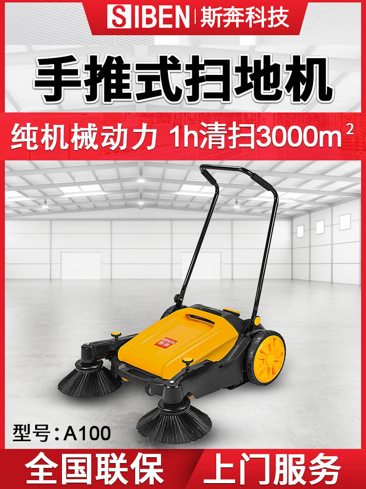 Siben unpowered hand-push sweeper workshop factory warehouse with dust sawdust farm road sweeper