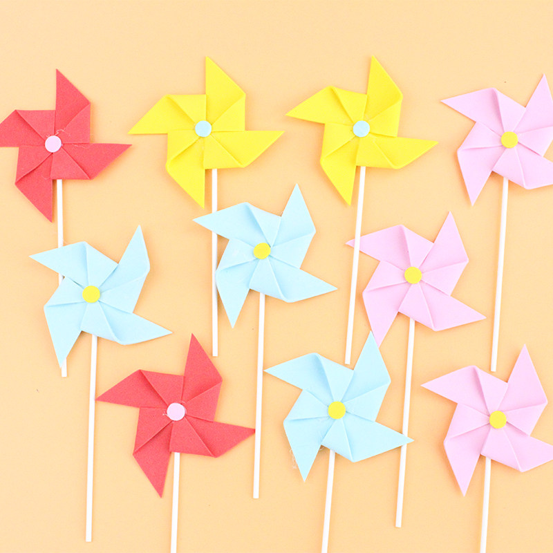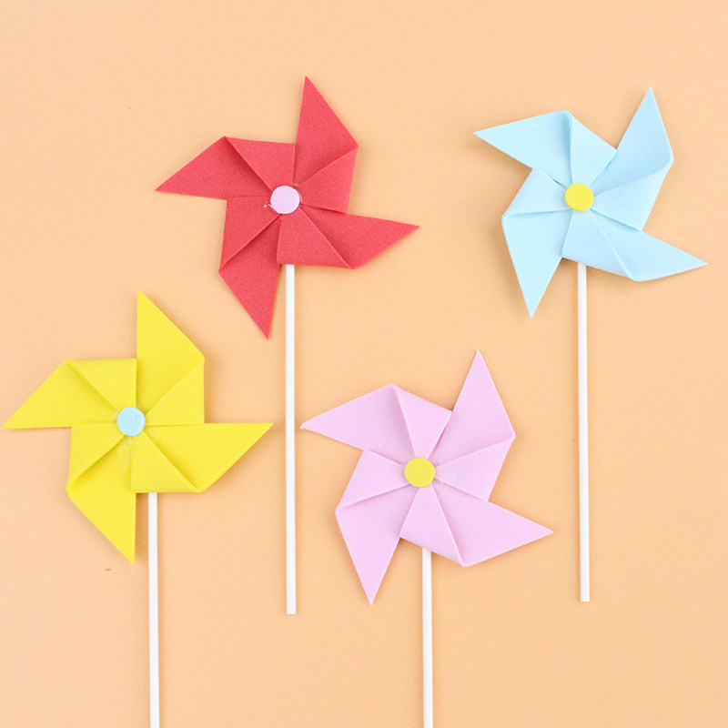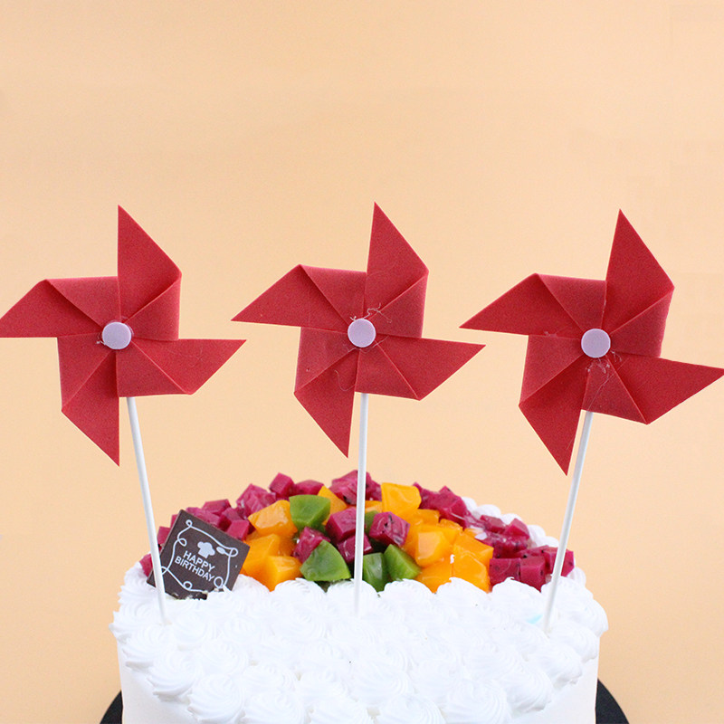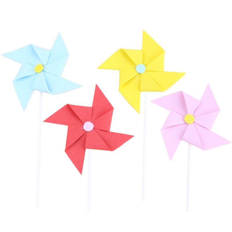 Children Birthday Cake Decoration Inserts Color Sponge Solid Small Windmill Plug-in Birthday Party Sweet card