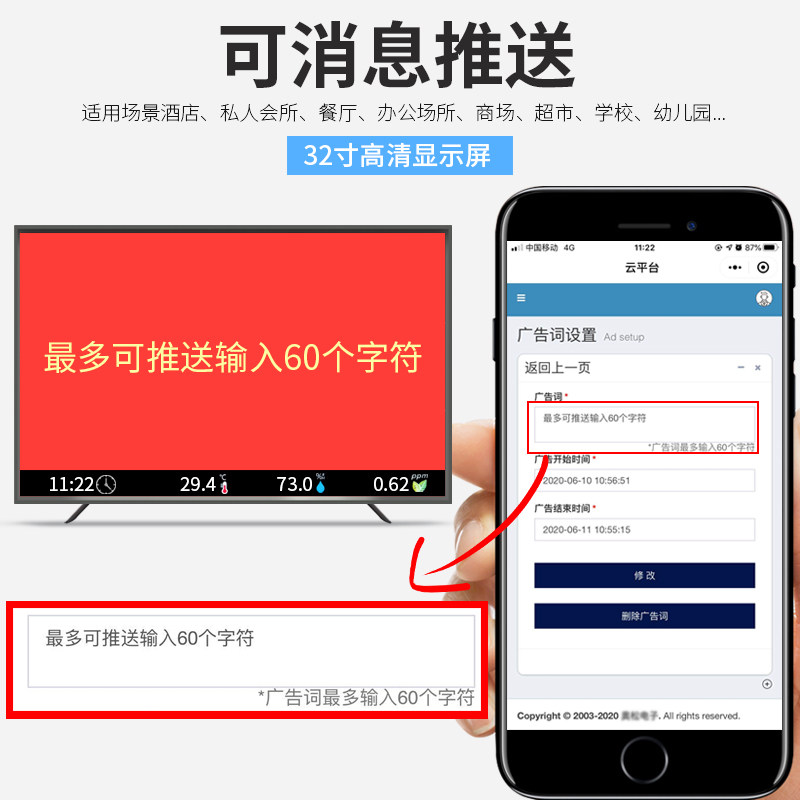 New 32-inch large-screen perpetual calendar display instrument 4K LCD wall clock temperature and humidity formaldehyde detector electronic version
