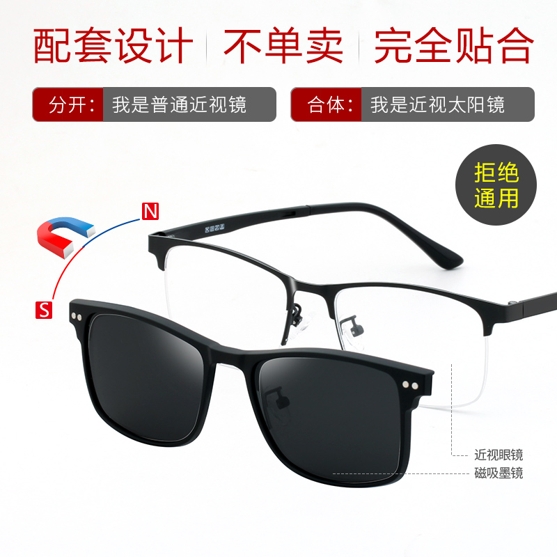 Black glasses frame half frame eye frame frame can be equipped with myopia glasses men with degrees men's business big face light