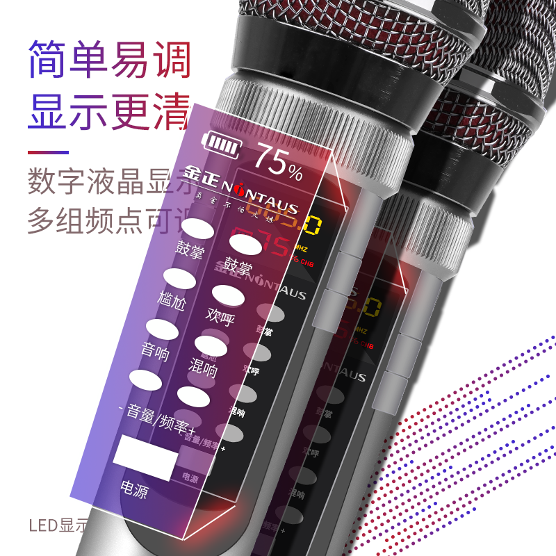Jinzheng metal wireless microphone u-segment FM one drag two anti whistling home singing k song family ktv conference host karaoke professional mobile phone microphone stage outdoor audio rechargeable
