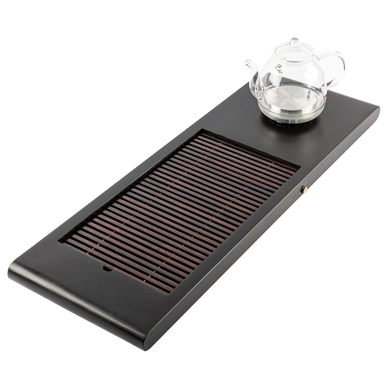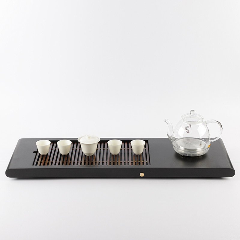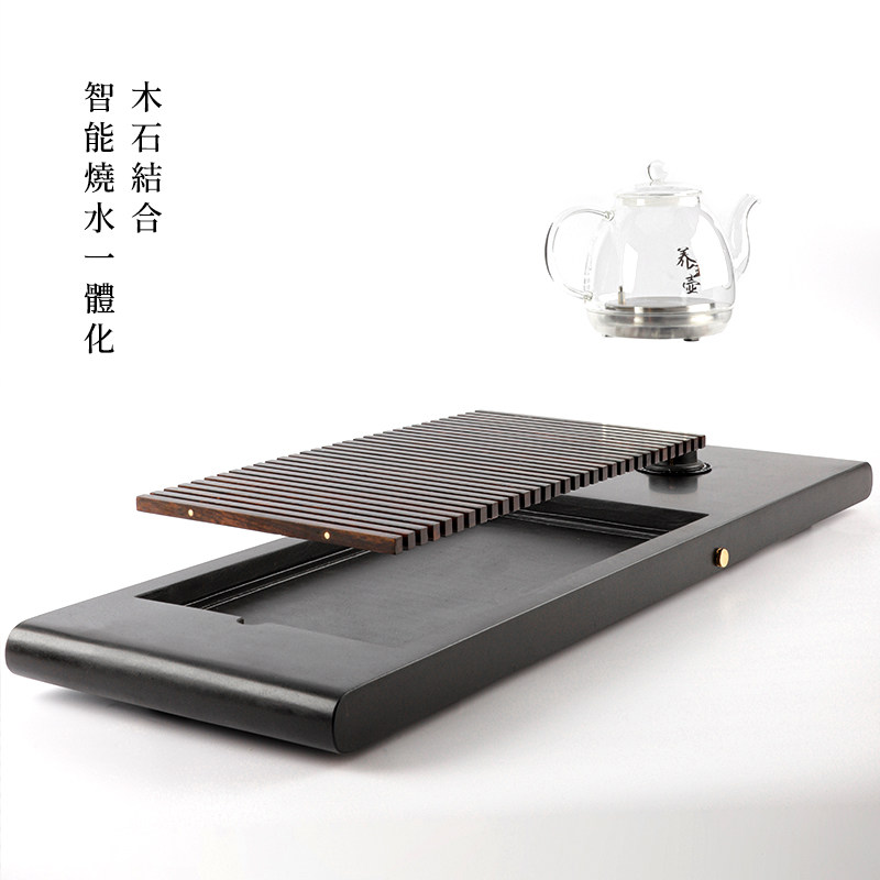 Natural Wujin stone tea tray automatic integrated induction cooker simple household ebony solid wood dry bubble drainage tea table