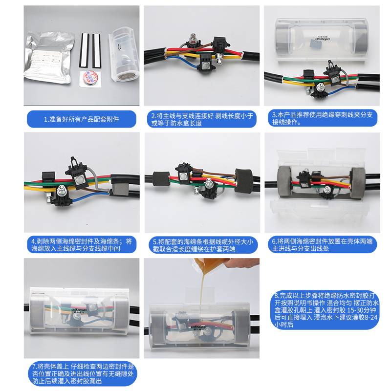 Glue-filled waterproof junction box CWY-2 street lamp buried underwater connector Connector Cable branch glue-filled protective box