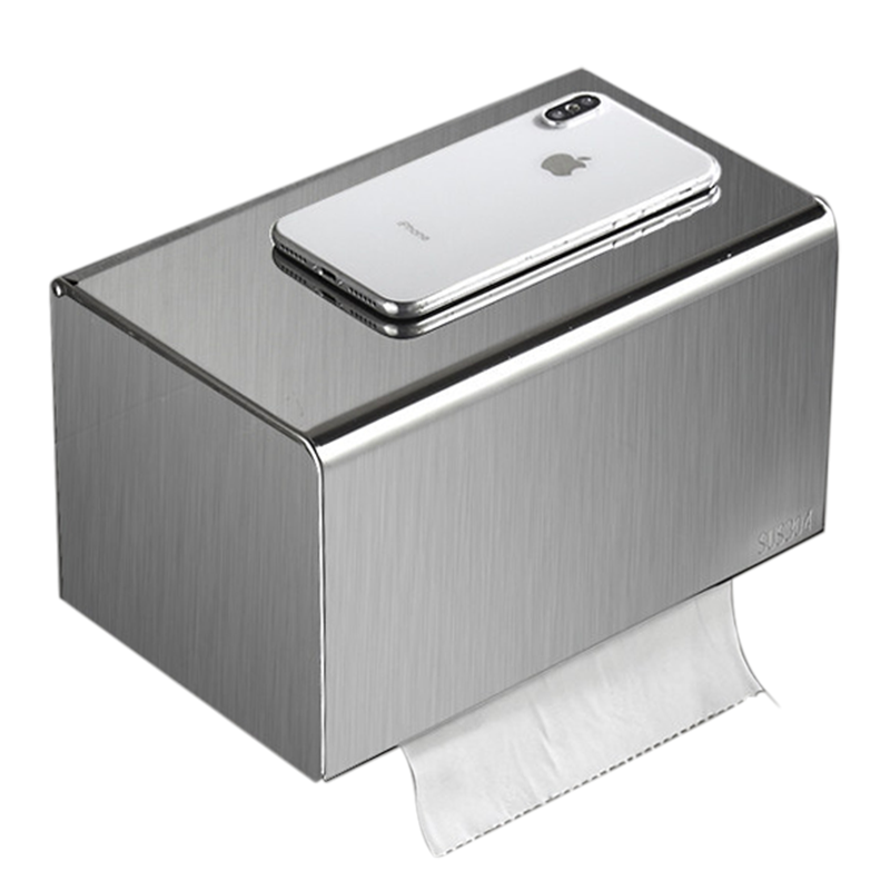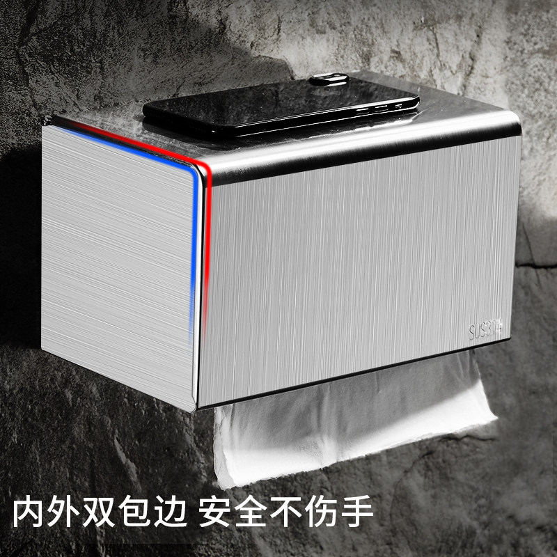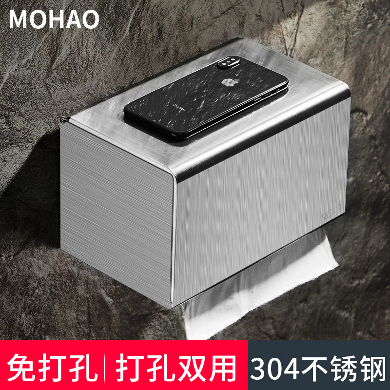 Tissue box toilet 304 stainless steel waterproof no-hole toilet paper box wall hanging toilet paper box toilet paper box