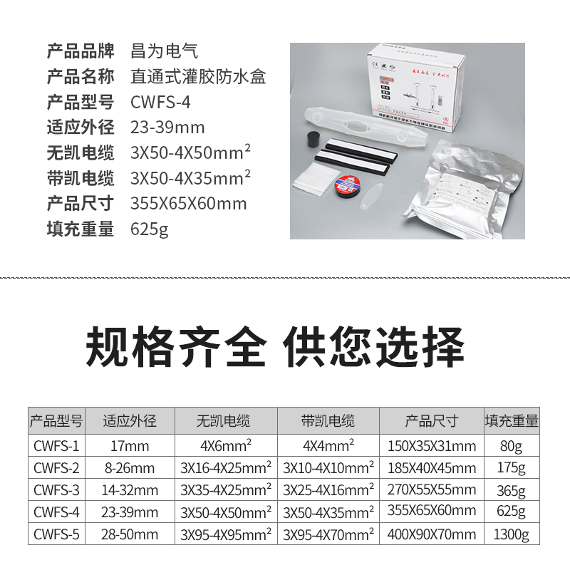 Glue-filled waterproof junction box Low-voltage buried cable middle joint connection outdoor deep underwater glue-injected protective cover