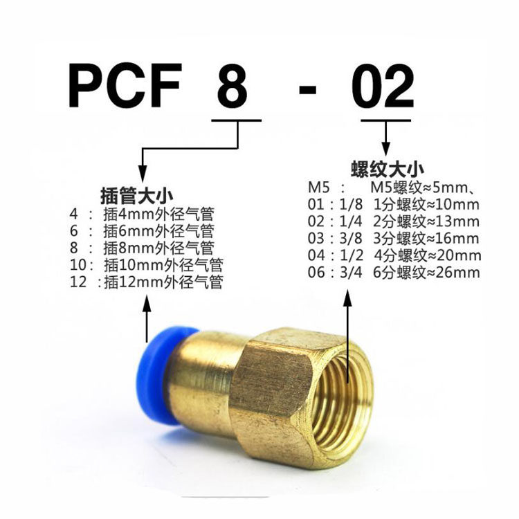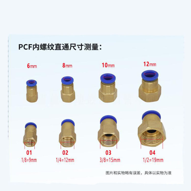 Pneumatic quick connector direct internal thread teeth straight through PCF4 6 8 10 12-M5 01 02 03 04